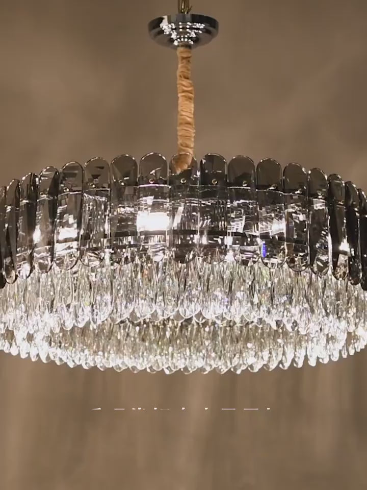 All copper K9 crystal chandelier, post-modern atmosphere, luxurious living room and dining room, light luxury 2023 light luxury villa model room