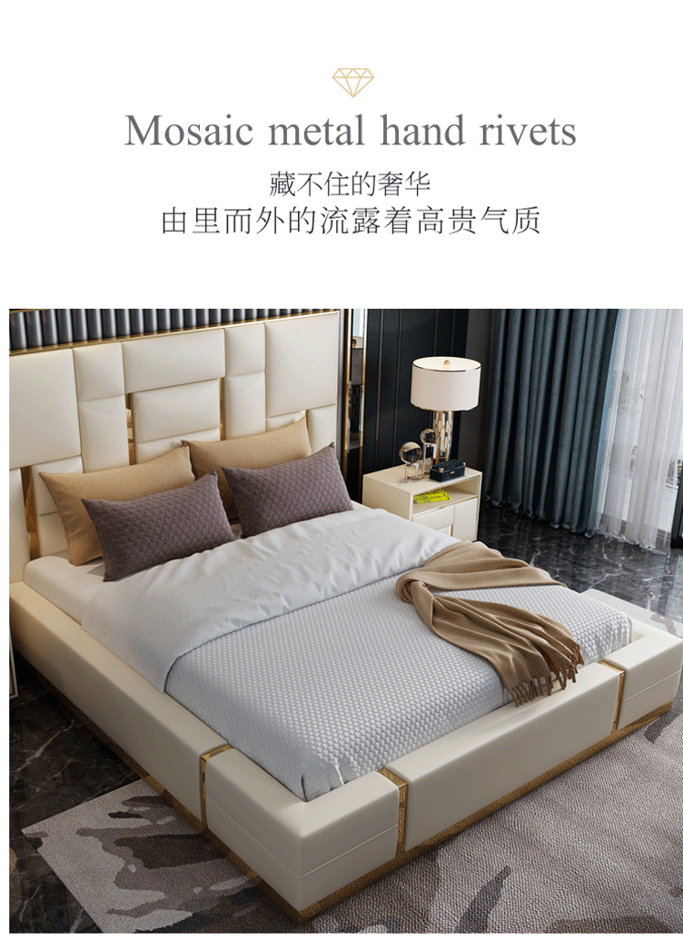 Hong Kong-style luxury ins leather bed Simple Italian soft bed American modern storage meter double master wedding bed