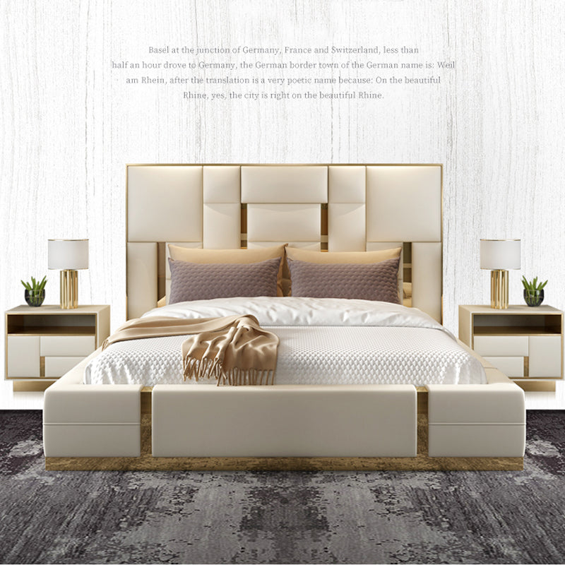 Hong Kong-style luxury ins leather bed Simple Italian soft bed American modern storage 1.8m2 double master wedding bed