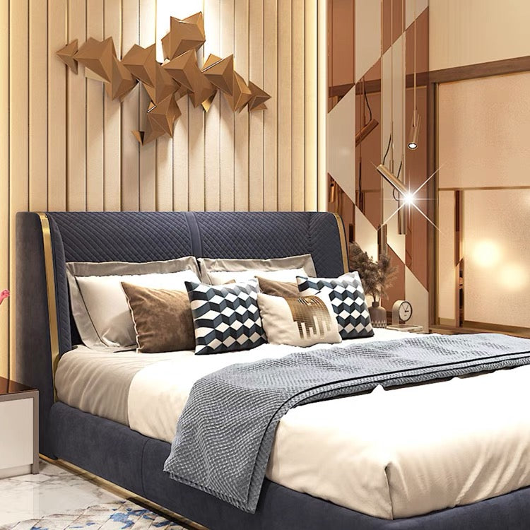 Italian leather bed, leather bed, small family, minimalist soft bag, double bed, modern and simple master bedroom, Italian light luxury wind bed
